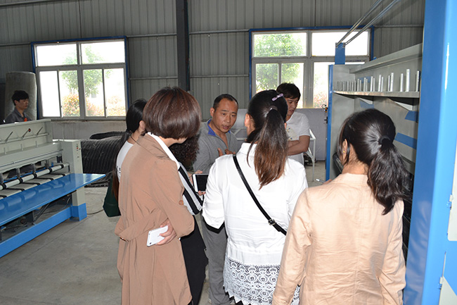 質檢部師傅師傅正在對大棚保溫被絎縫機做出廠質檢